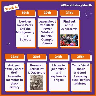Keep checking in to find out more about our learning throughout Black History Month, as well as our multi-cultural and anti-racist curriculum.